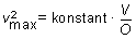 Det gælder med god tilnærmelse at kvadratet på denne sluthastighed, vmax2, er proportional med V/O, dvs.