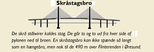 Den østlige del af Øresundsforbindelsen består af en godt 7,8 km lang bro mellem Sverige og den kunstige ø Peberholm - nabo til Saltholm. Broen er opdelt i tre dele. Der er to tilslutningsbroer på hhv. 3,041 km og 3,739 km. De leder på hver sin side op til den 1,092 km lange højbro med et hovedspænd på 490 m. De to pyloner hæver sig 204 m over havoverfladen. ![]()
