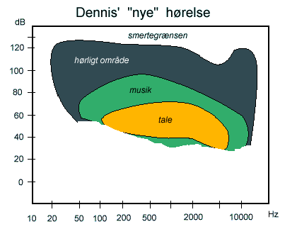 Et lydstudie i Dennis' øreAudiologen viser Dennis en lille dimmer på størrelse med et stykke vingummi. "Hvad er det?" spørger Dennis. "Jo, det er sådan noget, man kan programmere på en PC og sætte ind i øret, så man hører lige så godt som ellers, hvis man nu har et eller andet problem med sine ører," siger audiologen. Dennis: "Et ... høreapparat??" "Det kan man måske godt sige," svarer audiologen. "Men det er snarere et lille lydstudie, man får ind i øret, så det giver den helt rigtige sound ..." Audiologen udarbejder nu en strategi for, hvordan programmeringen af høreapparatet skal foregå. For at kompensere for høretabet omkring 4000 Hz kræver man særlig stor forstærkning i en af de højfrekvente kanaler. Den mest lavfrekvente kanal skal der også skrues pænt op for, men for at sikre den mest virkelighedstro gengivelse af lydbilledet under rolige forhold må hverken den eller den næstlaveste frekvens få alt for stor forstærkning. I fællesskab når man på den måde frem til en indstilling af høreapparatet.