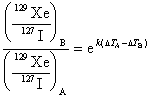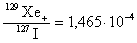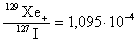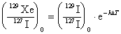 Nu, 4,5 Går efter, er alt 129I henfaldet til 129Xe, som ikke er radioaktivt. Man kan nu altså måle et ekstra bidrag til mængden af xenon, som kaldes 129Xe,. Derfor gælder: 129IDT = 129Xe+, som indsat giver: