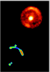RingHvis det næsten usandsynlige skulle være tilfældet, at den fjerne og den nære galakse befinder sig, så de ses i helt samme retning på himlen her fra vores plads på Jorden, så vil brydningen foregå på en sådan måde, at man ikke ser den fjerne galakse som en lille prik, men som en ring!