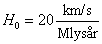 Som nævnt er der en del usikkerhed om størrelsen af Hubblekonstanten. I de følgende opgaver bruges værdien: