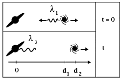 Vi går ud fra, at vi (Mælkevejen) ligger stille, og at galaksen, der til tidspunktet t = 0 befinder sig i afstanden d1, udsender lys med bølgelængden l1. Efter tidsrummet, t er galaksen nået ud til afstanden d2, og lyset ankommer derfor til Mælkevejen rødforskudt med bølgelængden l2.
