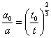 Opgave 09: Einstein-de Sitter modellenMan kender ikke det nøjagtige forløb af universets opbremsning. Men man kan få en idé om forløbet ved at antage en bestemt model for tidsafhængigheden af universets udvidelse. I én af de mest accepterede modeller af denne type går man ud fra, at skalafaktoren er proportional med t2/3 , hvor t er den tid, der er forløbet siden Big Bang. Man kan altså skrive: