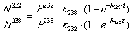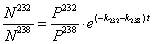 Opgave 15: Nedre grænse for universets alderVi har i opgave 9 set, at en model for universets udvidelse (Einstein-de Sitter) samt kendskab til Ho giver os en værdi for universets alder. I denne opgave skal vi se, hvordan henfaldet af radioaktive stoffer sætter en nedre grænse for universets alder. Her på Jorden finder vi f.eks. de to radioaktive isotoper: 232Th med halveringstid T1/2 = 1,41 · 1010 år = 14,1 Går og 238U med halveringstid T1/2 = 4,47 · 109 år = 4,47 Går. Der gælder formlen: N(t) = N0 · e -k · t (med de sædvanlige betegnelser).