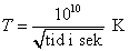 Modelberegninger viser, at universets temperatur i tiden relativt kort efter Big Bang kan beregnes efter formlen: