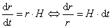 Fra Hubble-loven ved vi, at venstre side af ligning (2) er det samme som H · r. Indsættes dette fås: