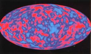 I løbet af 1930’erne blev man klar over, at universet udvider sig, og at det sandsynligvis ikke er uendelig gammelt. Faktisk ser det ud til, at det for ca. 12 milliarder år siden er blevet skabt ved en gigantisk eksplosionslignende begivenhed, som kaldes for Big Bang. Men vi ved stadigvæk ikke, om universet har uendelig lang tid tilbage at leve i, om det er uendelig stort eller om dets nuværende udvidelse med tiden vil blive vendt til en sammentrækning. At besvare disse spørgsmål er nogle af kosmologiens allervigtigste udfordringer. Himlen „set" med satellitten COBE’s mikrobølgeøjne. Denne kortlægning viser fordelingen af de allerførste de allerførste stofansamlinger i universet, blot nogle få hundrede tusinde år efter universets fødsel |