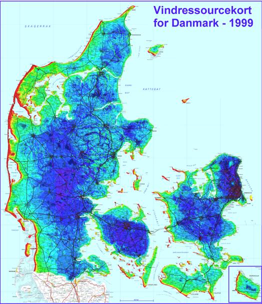 Vindressourcekortet er udviklet af RISØ og Energi- og Miljødata. Udviklingen er finansieret af Energistyrelsen. Vinddatagrundlaget er Beldringe vindstatistik og landsdelskorrektioner.