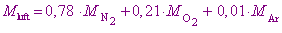 Atmosfærisk luft er en blanding af mange gasser med forskellige molmasser. Luftens molmasse får man som et vægtet gennemsnit af de forskellige gasser der indgår. For de fleste formål kan man regne med at tør luft består af 78% N2, 21% O2 og 1% Ar. Dvs. at molmassen for luft er: