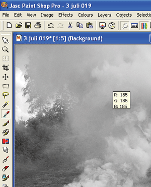 Ved hjælp af “dropper”–værktøjet i menuen til venstre kan I aflæse værdien af en pixel.