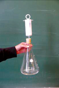 Forklaring: Dette lille eksperiment kan bruges til at illustrere aerosolers indflydelse på skydannelsen. Det tager ikke lang tid, og eleverne kan selv lave det. Det illustrerer også ret godt, hvad der sker, når man ser ”mosekonebryg”. Mosekonebryg ses typisk om morgenen i daggryet. Fænomenet skyldes, at den stillestående luft over en mose har højt indhold af aerosoler. Om morgenen bliver de øvre luftlag over mosen varmet op før de nedre, pga. Jordens rotation. Dette bevirker, at luften nede ved mosen vil bevæge sig opad og trykket vil falde. Derfor ses mosekonebryg, på samme vis som i kolben. Paradokset om aerosoler Nye resultater viser, at skyer nær ved Jordens overflade for det meste er med til at køle Jorden. Da aerosoler typisk befinder sig i de nedre lag i atmosfæren, er de altså med til at danne lave skyer, som køler. Af mange sundheds- og miljømæssige årsager har man siden 1990 globalt sænket niveauet af aerosoler. Dette mener mange forskere har været medvirkende årsag til den globale opvarmning. Selvom den totale mængde af aerosoler er nedsat, så er flytrafikken steget eksplosivt i de seneste årtier, hvilket har givet mange aerosoler i de øvre lag af atmosfæren. På grund af det pludselige fald til lavt tryk udenfor motorerne bliver der her dannet skyer, som holder længe, de såkaldte contrails. Disse contrails forstærker drivhuseffekten, og er altså en medspiller i global opvarmning. Spørgsmålet er dog stadig, hvor stor en indflydelse contrails har på den globale opvarmning. Kommentar Forsøget kan laves noget voldsommere, dog ikke af eleverne, ved at danne overtryk i flasken først. Det er forholdsvist simpelt med en cykelpumpe eller lignende og har en slående effekt. En video med eksperimentet kan ses her: www.stevespanglerscience.com/experiment/00000030. Denne version illustrerer også dannelsen af contrails rigtigt godt. |