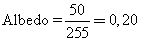Grunden til at man skal dividere med 255 er, at det svarer til totalreflektion. Dermed ligner formlen den ovenstående. Et eksempel Du har justeret lysstyrke og kontrast på dit billede og derefter aflæst pixelværdien til 50. Herefter findes albedo som: