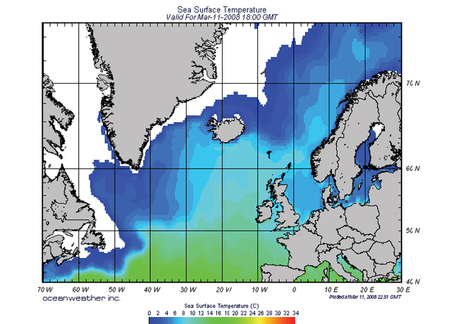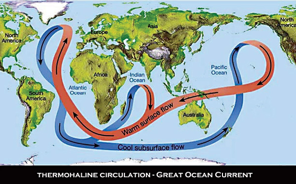 O5 – Global havstrøm og varmetransport Ifølge forskerne sker der en nordgående varmetransport i Atlanterhavet på op til 1 · 1015 W. Se figuren.