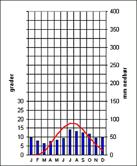 Undersøg nedenstående hydrotermfigurer sammen med et atlas. Hvordan kan forskellene forklares?