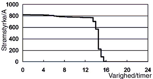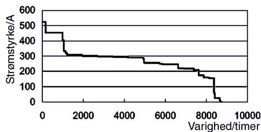 Figurerne nedenfor viser strømstyrken og effekttabet hen over et år for et 4 km langt kabel, der er placeret i det forgrenede ledningsnet. Kablet kan overføre en maksimale strømstyrke på 2000 A