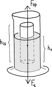 Ved frysepunktet er isens densitet 917 kg/m3. Hvis vi antager, at isbjerget er søjleformet, og at vandet er ferskvand med densitet 1000 kg/m3, kan vi ved at sammenligne tyngdekraften på vand- og issøjlerne beregne det teoretiske svar. Når det søjleformede isbjerg ligger stille i vandet, vil tyngdekraften på isen modsvares af opdriften. Archimedes lov siger, at opdriften er lige så stor, som tyngden af det vand, som isen fortrænger.