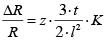 hvor er den relative ændring i resistansen, z er bjælkens nedbøjning og K er en materialekonstant.