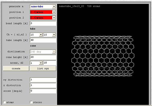 1. Man kan forestille sig, at nanorør dannes ved at sammenrulle et lag grafit til et rør, gå til reizei.t.u-tokyo.ac.jp/~maruyama/agallery/agallery.html og klik på (10,10) Nanotube.