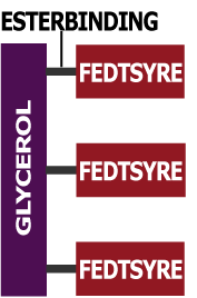 FedtstofferEt fedtstofs molekyler er meget anderledes i deres opbygning end vandmolekylerne. Mange fedtstoffer er triglycerider. Det betyder, at hvert fedtstofmolekyle har en grundstruktur, der stammer fra alkoholen glycerol, hvortil der er bundet tre molekyler fedtsyrer.