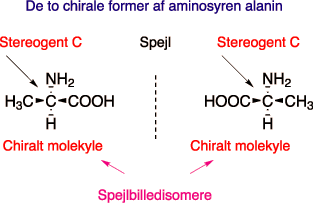 Stereoisomerer er stoffer med samme strukturformel, men med forskellige tredimensionale strukturer. Fx kan to strukturer være spejlbilleder af hinanden. Der er så tale om spejlbilledisomeri. Strukturer, der er forskellige fra deres spejlbillede, kaldes chirale. Spejlbilledisomeri kan opstå, når molekylet indeholder et C-atom med fire forskellige substituenter på. Et sådant C-atom kaldes stereogent (tidligere: asymmetrisk, chiralt).