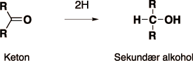 En keton kan reduceres til en sekundær alkohol. Normalt nøjes man med at skrive bruttoreaktionen op:
