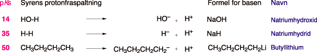 Sammenligning af basestyrken af natriumhydroxid, natriumhydrid og butyllithium.