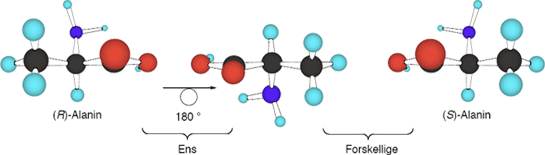 (R)-Alanin og (S)-alanin er spejlbilleder af hinanden og altså ikke identiske.