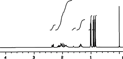 4. NMR-Spektrene fig. 3.2.1 og fig. 3.2.2 viser menthol og menthon. Hvilket spektrum hører til hvilken struktur? Der skal argumenteres ud fra kemisk skift, integralskurve og koblingsmønstre.