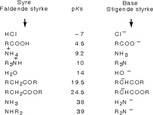 • Find selv nogle syrer og/eller baser og indfør dem ind i pKs-skemaet ved hjælp af deres pKs-værdier.